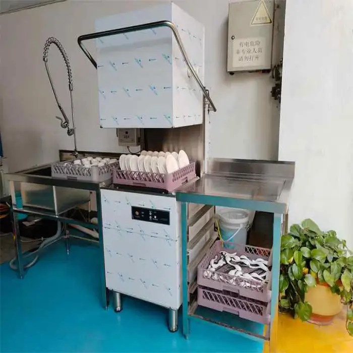 This is an automatic commercial dishwasher, which automates the washing process for efficiency.