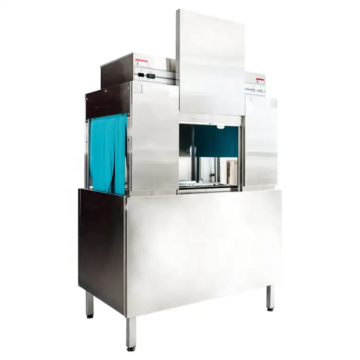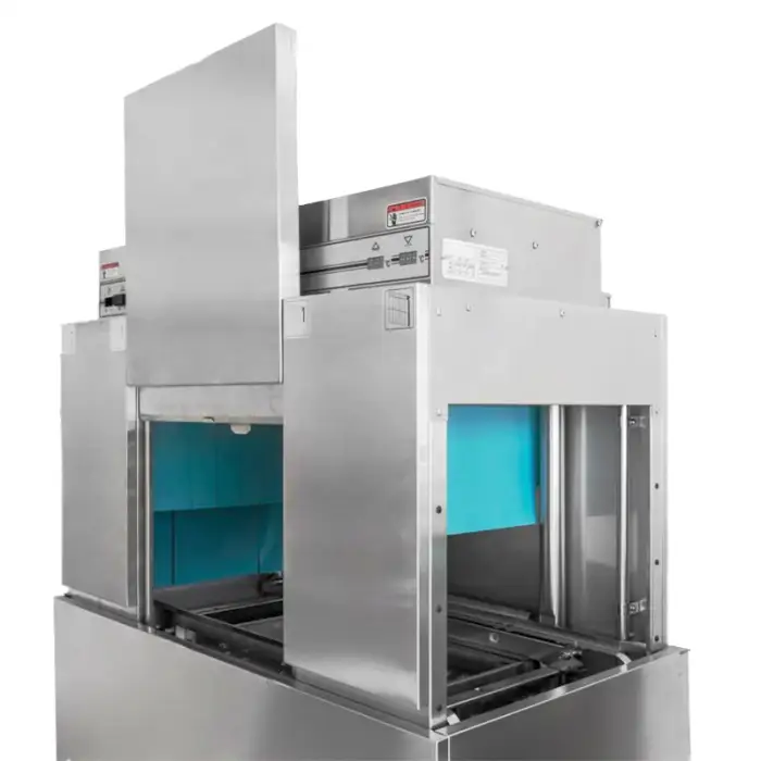 The efficient conveyor system allows for fast dishwashing, enabling continuous operation and improved workflow in busy kitchens.