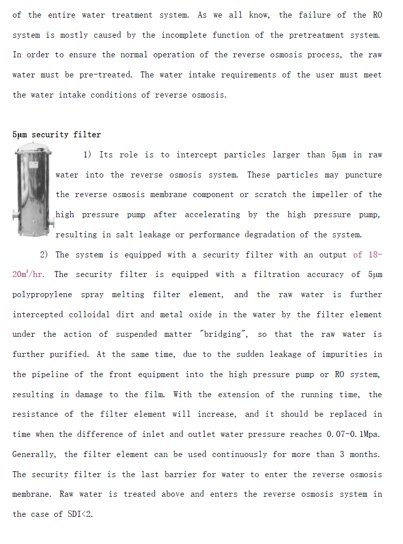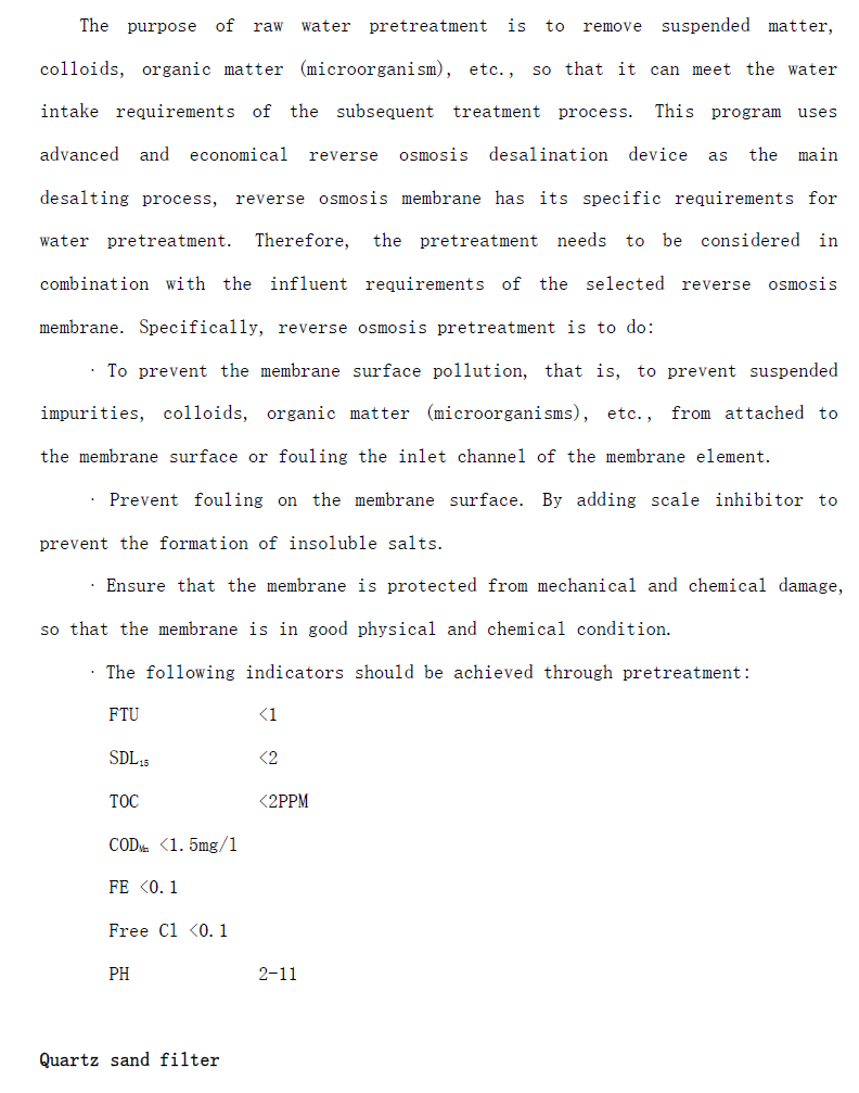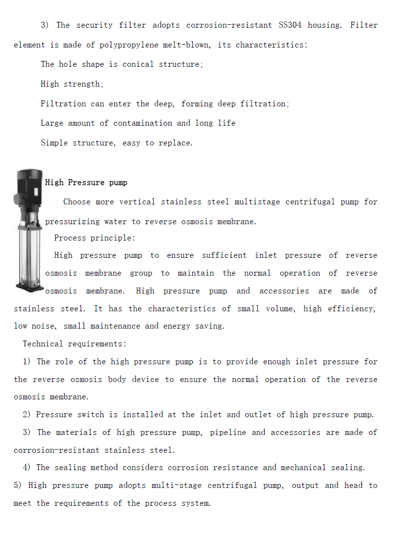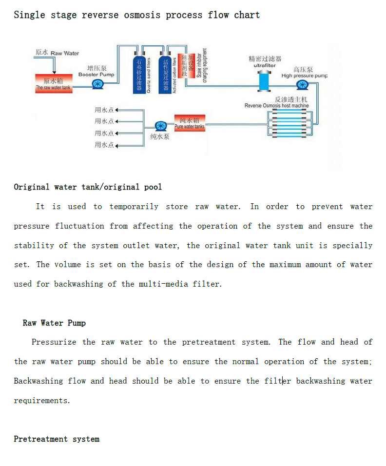 Pre-treatment may include sediment filtration and carbon filtration to remove larger particles and chlorine, helping to extend the life of the reverse osmosis membrane.