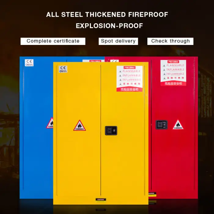 The box is designed for storing dangerous chemicals, specifically flammable and explosive liquids.