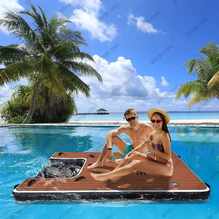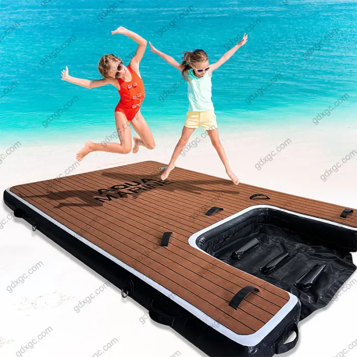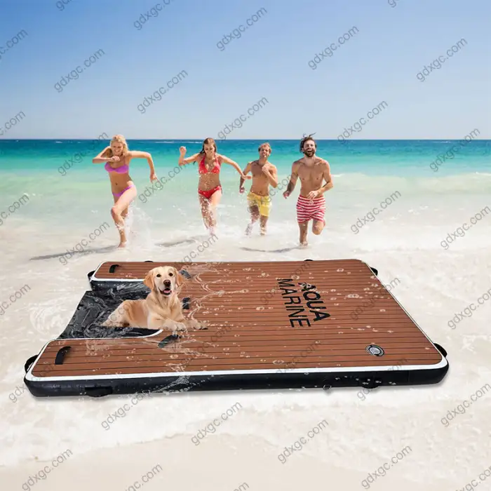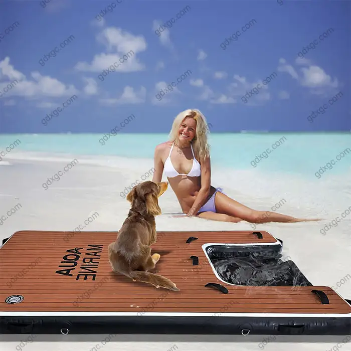 The Inflatable Dock Platform provides a safe and stable surface for dogs to play and relax, combining fun and safety in the water.