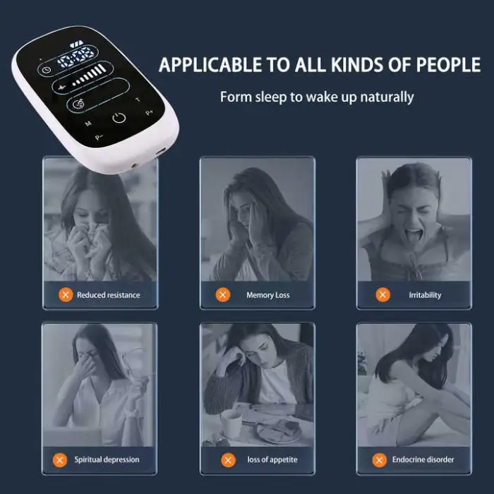 Side effects are generally mild and uncommon; they can include tingling at the electrode site, headache, skin irritation under electrodes, dizziness or transient sleepiness. If you experience severe or persistent effects, stop use and consult a healthcare professional.