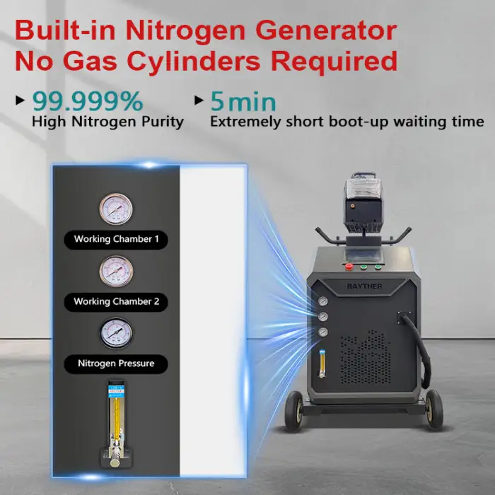 The built-in nitrogen generator allows for gas-free welding by supplying nitrogen during the welding process, eliminating the need for a gas cylinder.