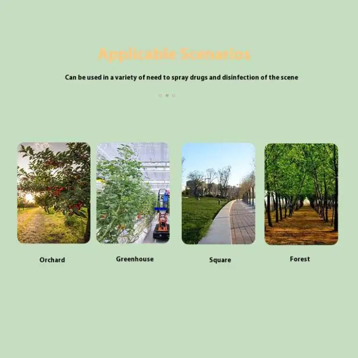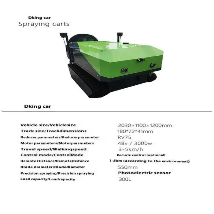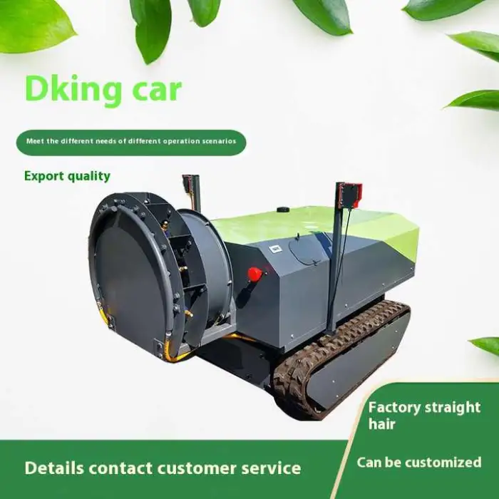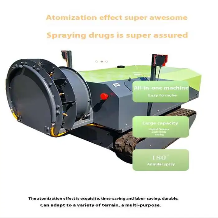 A smart, lightweight orchard sprayer that runs on a crawler chassis and is operated via a wireless remote. It combines an efficient pump, durable engine/motor components and supports video inspection for quality assurance, designed for spraying orchards, crops and large areas.
