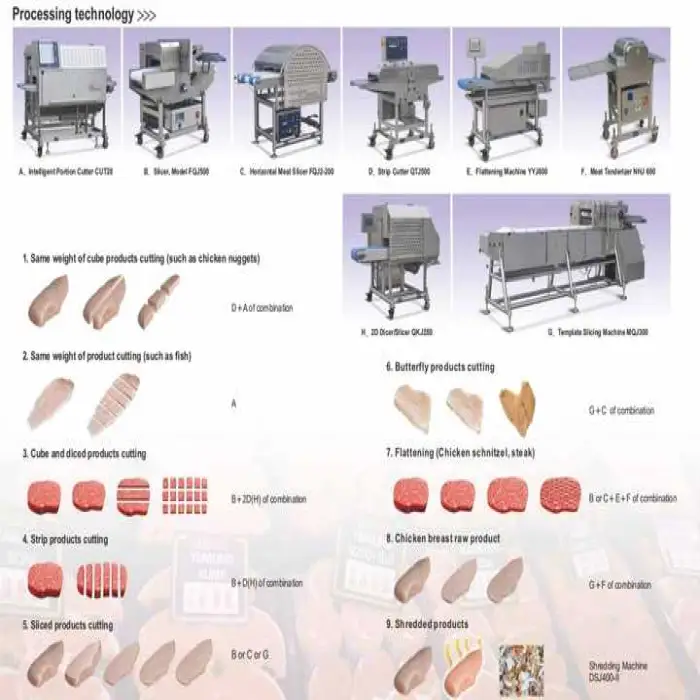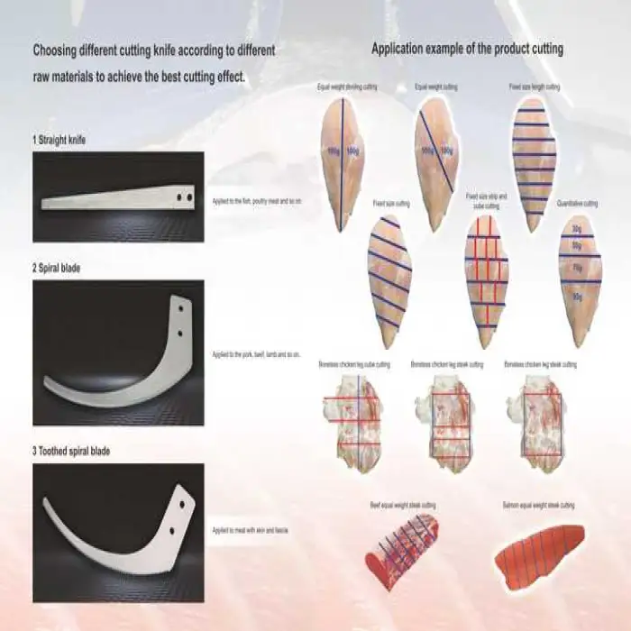 It supports multiple cutting types including strips, steaks, cubes, and dice with high accuracy and consistency.