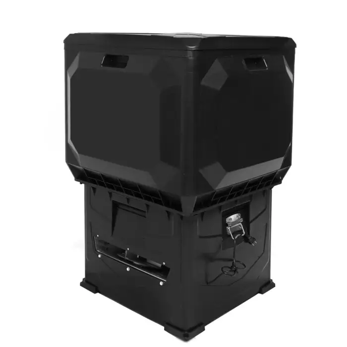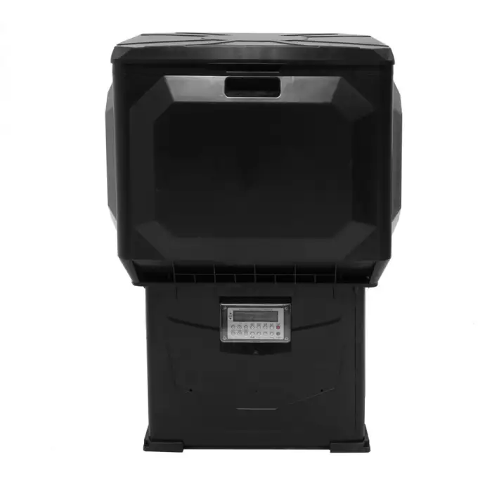 The feeder has a large capacity designed for extended use, making it ideal for aquaculture practices.