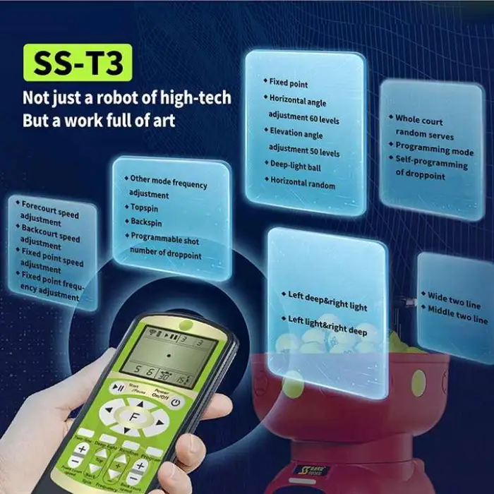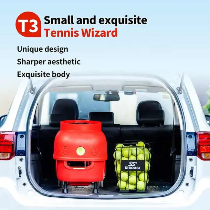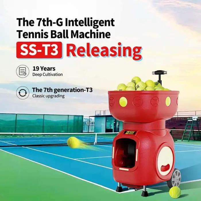 The model number is SS-T3 (Design Intelligent Tennis Ball Machine SIBOASI T3).