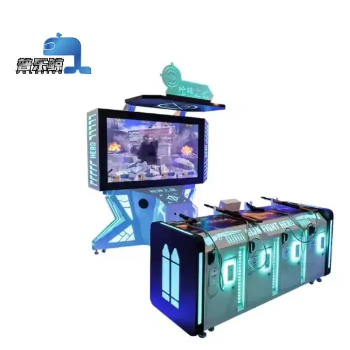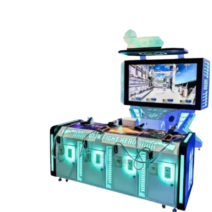 The body-sensing technology detects player movements, allowing for interactive shooting gameplay.