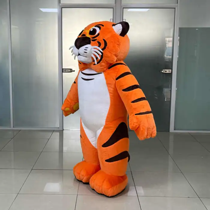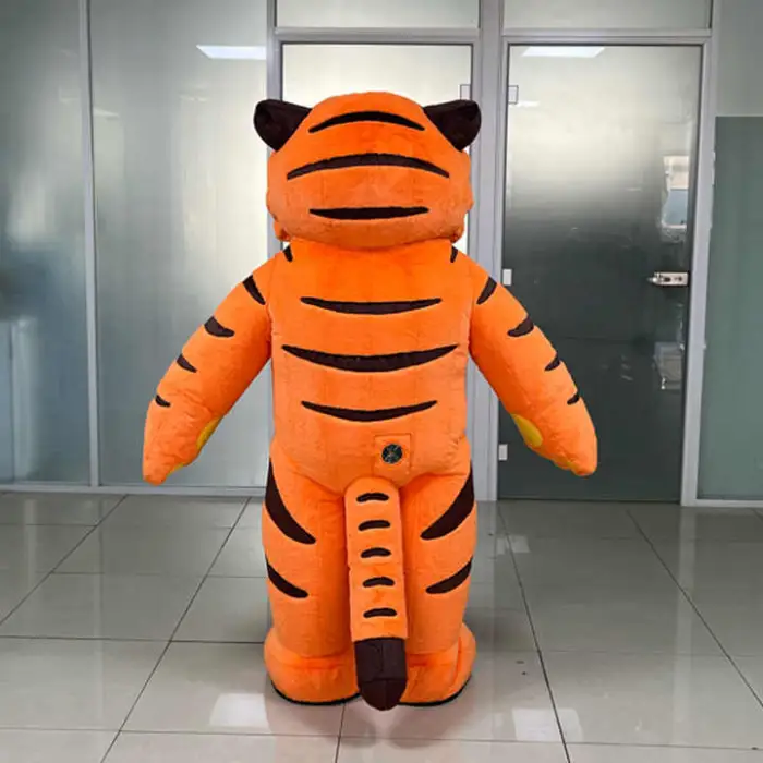 Built-in fans generate some noise while running, typical of inflation fans used in wearable inflatables. Noise levels depend on fan model and battery setup; contact us if low-noise fans are required for your event.