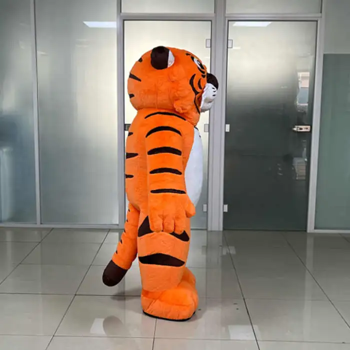 The costume is made from Oxford cloth and is designed to be durable, weather-resistant, windproof, and sun-resistant for outdoor event use.