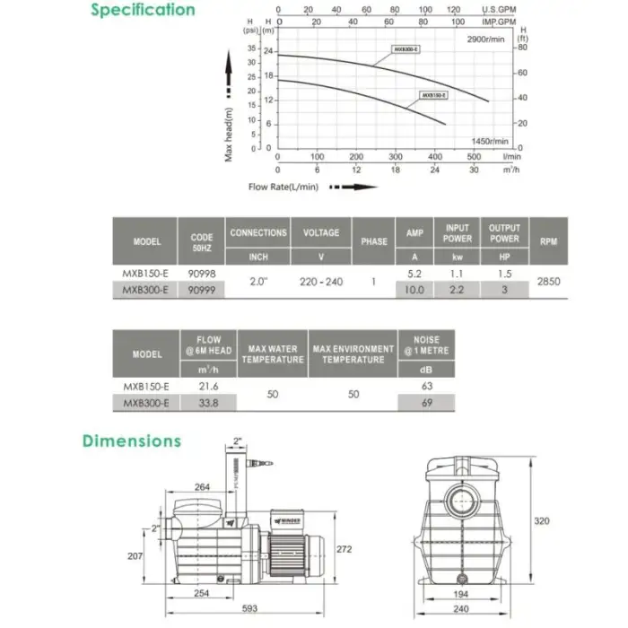 The Inverter Pump is available in two power ratings: 1.1KW and 2.2KW, allowing you to choose the right option based on your pool size and requirements.