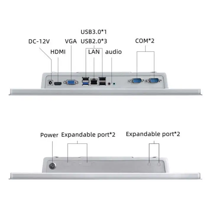 The IPC Touch Computer includes multiple interface options such as DVI, RS232C, HDMI, VGA, and USB.