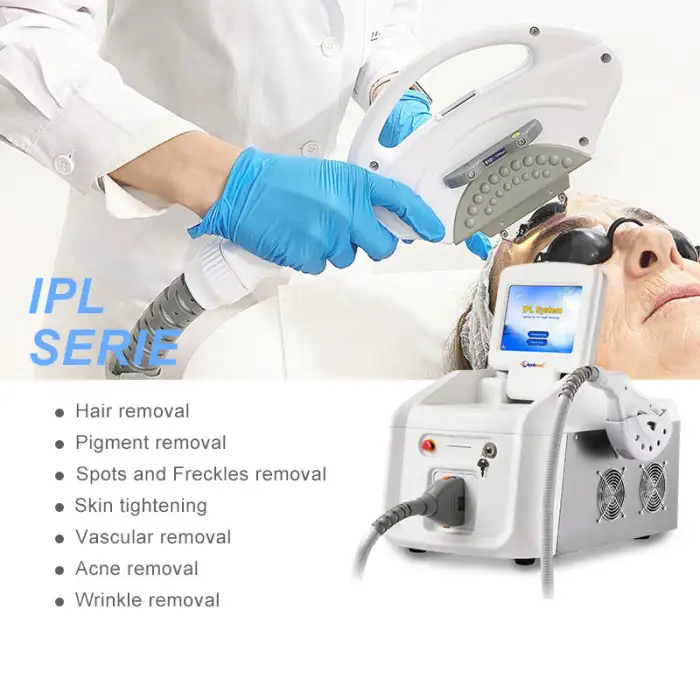 The IPL Hair Removal Device can be used for hair removal, acne treatment, blood vessel removal, skin rejuvenation, pigmentation correction, and wrinkle reduction.