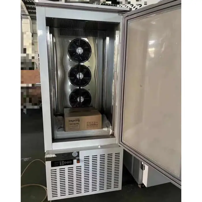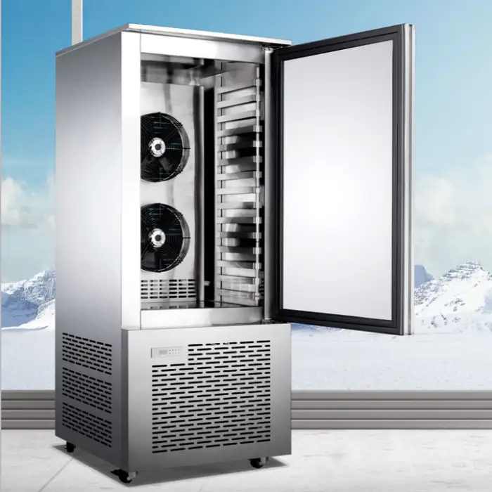 The IQF 10 Trays Shock Freezer has a capacity of 10 trays, allowing you to freeze a significant amount of seafood, meat, and other food products at once.