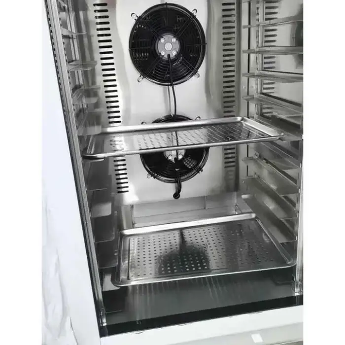 The IQF 10 Trays Shock Freezer uses a fan cooling system for efficient and effective cooling.