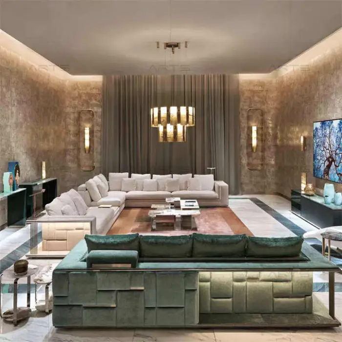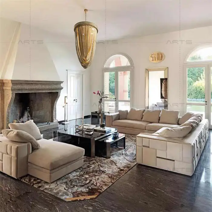 1. What is the main material used in the Italian Luxury Sectional Sofa Set?The main materials used in the Italian Luxury Sectional Sofa Set include solid beech wood, stainless steel, and high-end fabric. 2. Is the sofa set available in different colors?Yes, the sofa set is customizable, allowing you to choose from a variety of colors. 3. What type of filling material is used in the sofa?The sofa is filled with high-quality sponge for enhanced comfort. 4. Can this sofa set be used in commercial spaces?Yes, the Italian Luxury Sectional Sofa Set is suitable for various applications, including living rooms, bedrooms, hotels, apartments, and office buildings. 5. What is the design style of this sofa set?The sofa set features a minimalist design style, making it a perfect addition to modern decor. 6. Does the sofa require assembly?No, the sofa comes fully assembled and ready to use. 7. What is the shape of the sofa?The sofa is designed in an L-shape, providing ample seating space. 8. Is the cover material genuine leather?Yes, the cover material of the sofa set is made from genuine leather, ensuring both luxury and durability. 9. What is the minimum order quantity (MOQ) for this sofa set?The minimum order quantity for the Italian Luxury Sectional Sofa Set is 1 set. 10. What model number is associated with this sofa set?The model number for this sofa set is AR-SF138. 11. How many seats does the sectional sofa provide?The sectional sofa set is designed to accommodate three seats. 12. Is the sofa suitable for high-end villas?Yes, this sofa set is specifically designed for high-end villas and luxurious homes. 13. What type of packing is used for the sofa?The sofa does not require mail packing as it comes fully assembled. 14. Can I use this sofa in an entry hall?Yes, the sofa set is versatile and can be used in various spaces, including entry halls. 15. What brand is the Italian Luxury Sectional Sofa Set?The sofa set is produced by Arts Furniture. 00 Overall Rating