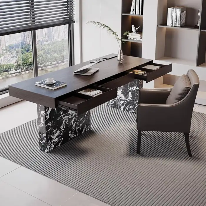 The desk features a modern minimalist style, which is both elegant and functional, making it a great addition to any home or office.
