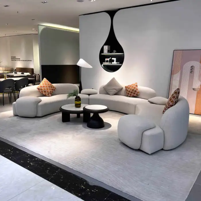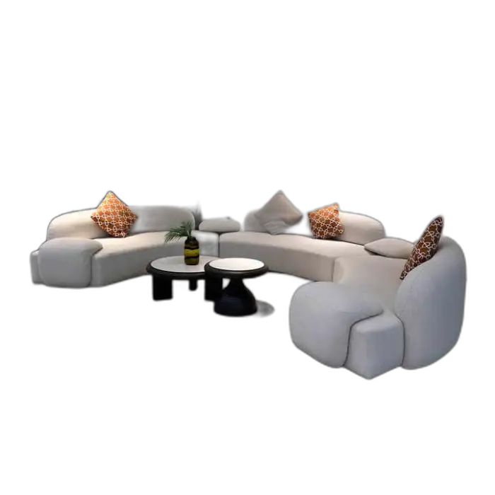 Italian White Velvet Curved Sofa Modern Living Room Sofa Set Furniture Arabic Luxury Fabric Boucle Sofa