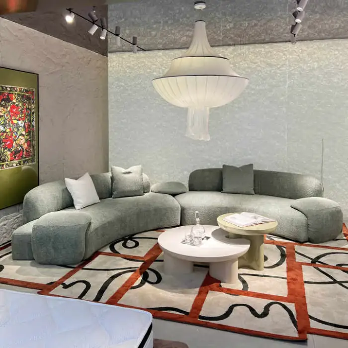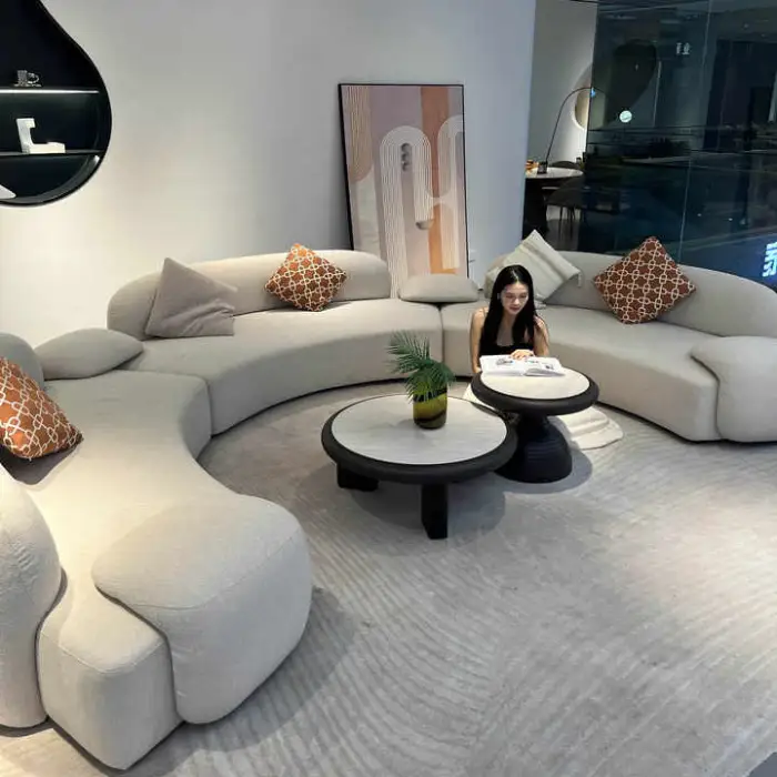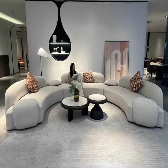 Seating capacity depends on the chosen configuration and size of the sectional. Typically the curved sectional can seat approximately 3–4 adults, but confirm the exact model dimensions with the seller.