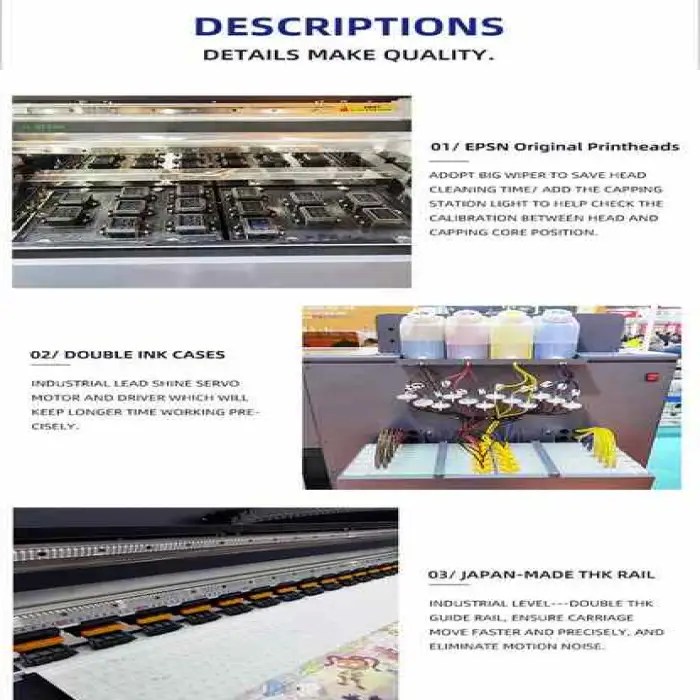 It uses inkjet printing technology equipped with an Epsn I3200-A1 print head for detailed designs.