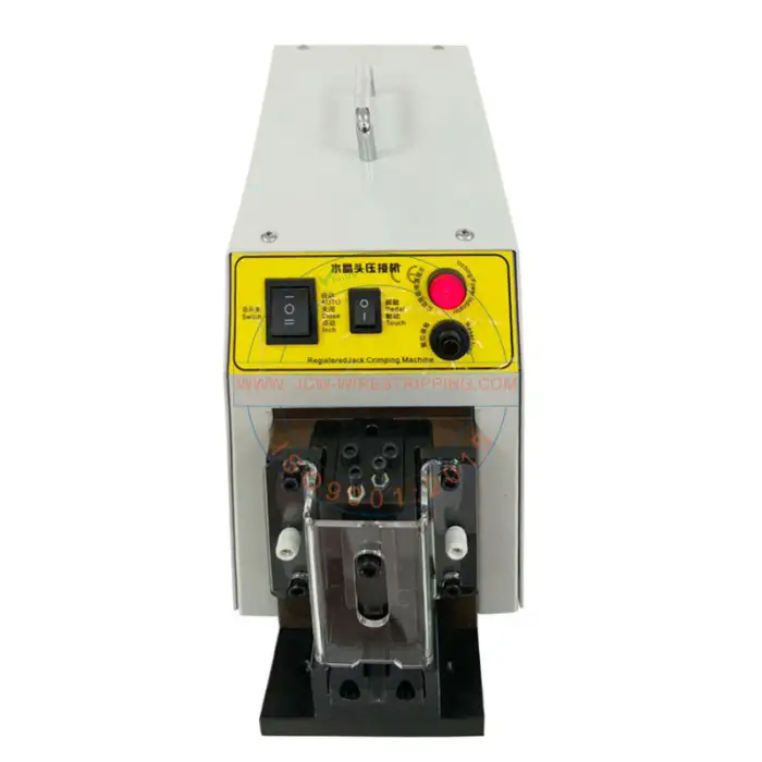 The JCW-321 crimping machine can handle RJ45, RJ11, and modular jacks.