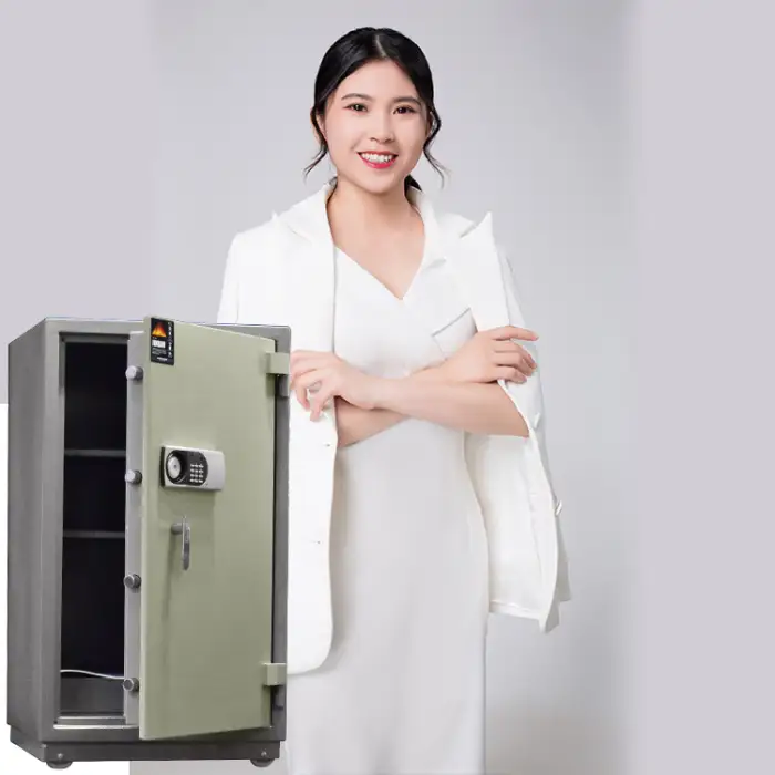 The safe has a spacious interior suitable for jewelry, cash, and important documents.