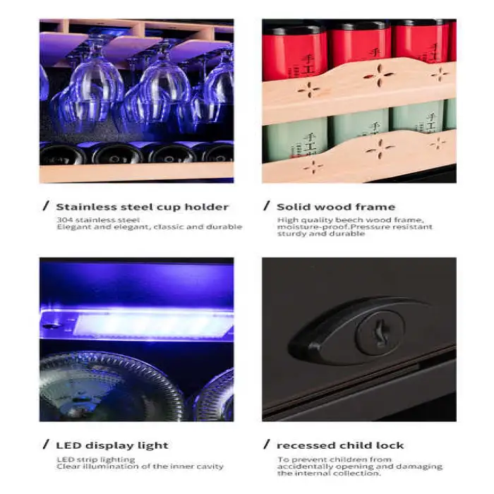 The JiuFu Portable Wine Cooler is made of stainless steel and features tempered glass doors.