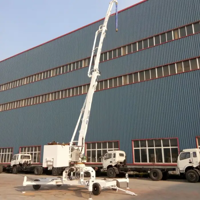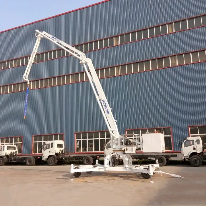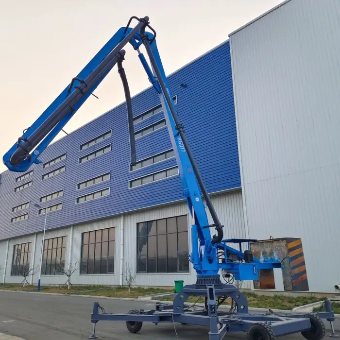 The articulated arm provides enhanced maneuverability and precision in placing concrete in hard-to-reach areas.