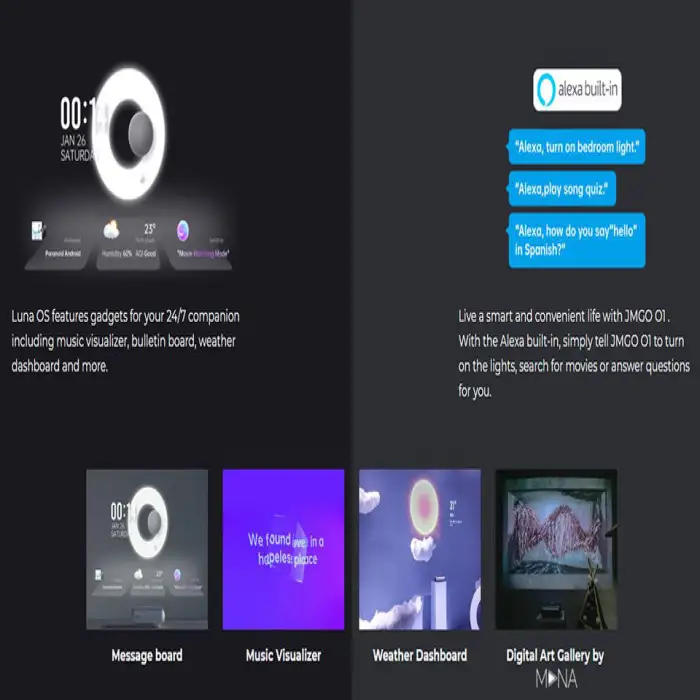 The JmGO O1S is perfect for home cinema setups, gaming, business presentations, educational purposes, outdoor movie nights, and events.