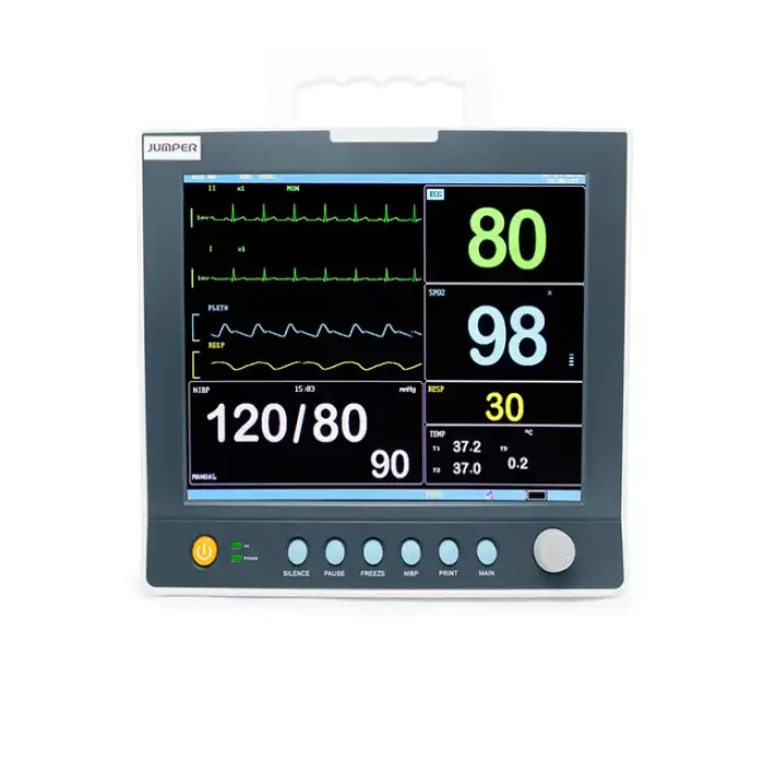 The monitor features a large 12.1 or 15-inch TFT color screen that provides clear and detailed visual displays, allowing healthcare professionals to read patient data at a glance.