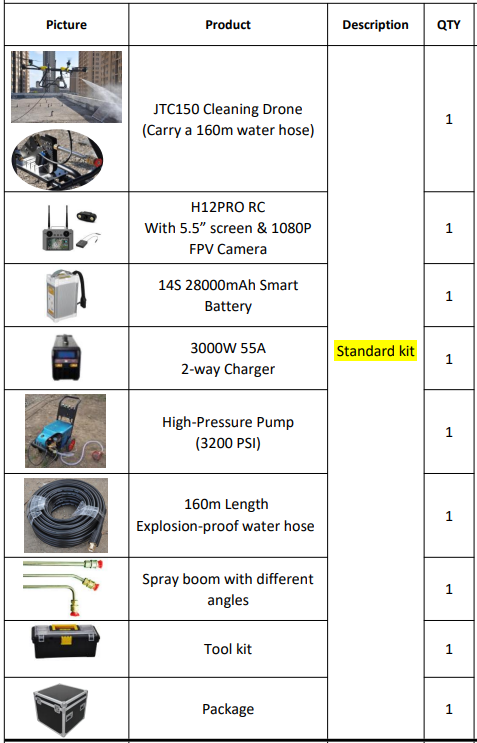 The JTC150 Cleaning Drone is equipped with advanced sensors that help it detect and navigate around obstacles, preventing collisions and ensuring efficient cleaning paths.
