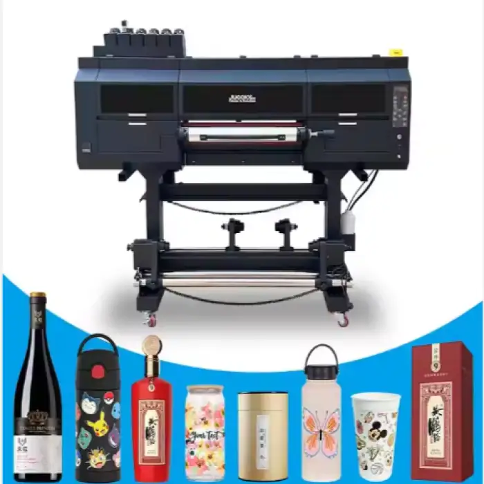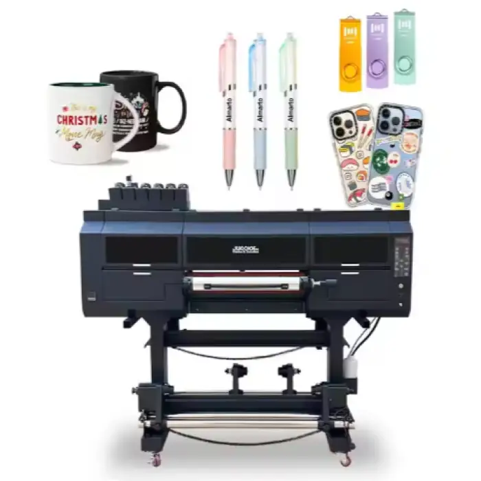 The Jucolor UV DTF Printer 60cm is capable of printing on various materials including sublimation paper, PP, photo paper, and light film.