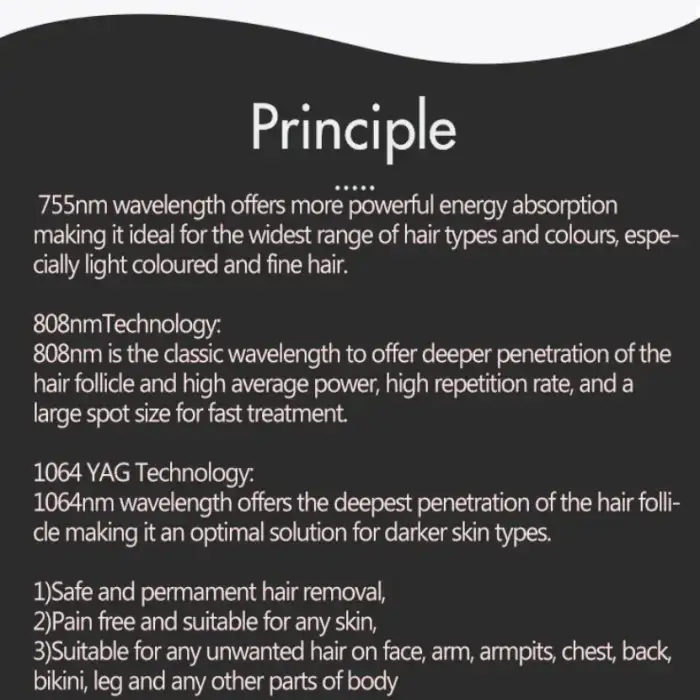 The diode laser emits a wavelength of light that is selectively absorbed by melanin in hair follicles. The absorbed energy heats and disables the follicle to inhibit future hair growth. For skin rejuvenation, controlled laser energy stimulates collagen and elastin production to improve texture and firmness.