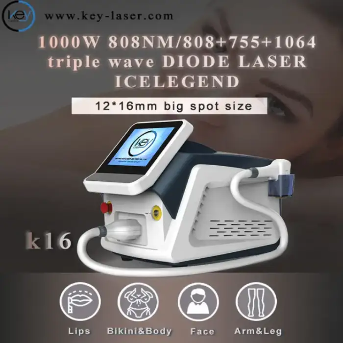 Diode lasers are most effective on darker hair (high melanin) and a wide range of skin tones. The K16 is designed to be versatile for many skin types, but optimal settings vary by skin phototype. Darker skin tones and lighter hair colors may require adjusted parameters. A patch test and professional assessment are recommended before full treatment.