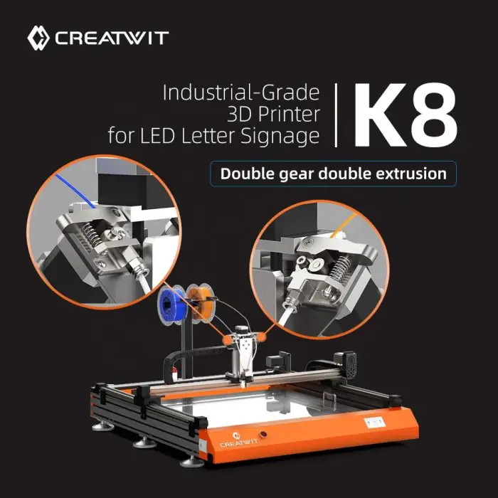 The K8 offers precision and fast printing without the complexity of CNC, bending, or laser cutting, making it a more accessible option for sign-making.