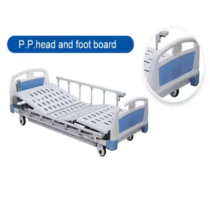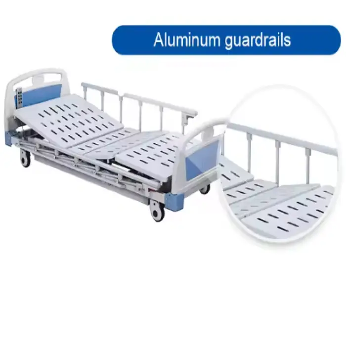 The description does not list accessories. Many hospital beds offer optional side rails, locking casters, IV poles and mattresses—contact the supplier or dealer to confirm accessory availability and compatibility.
