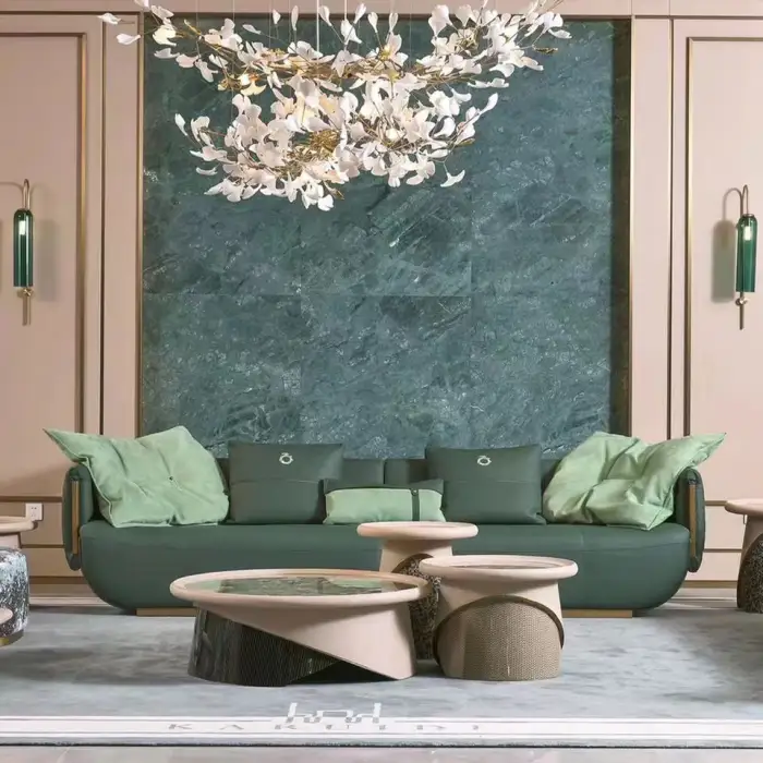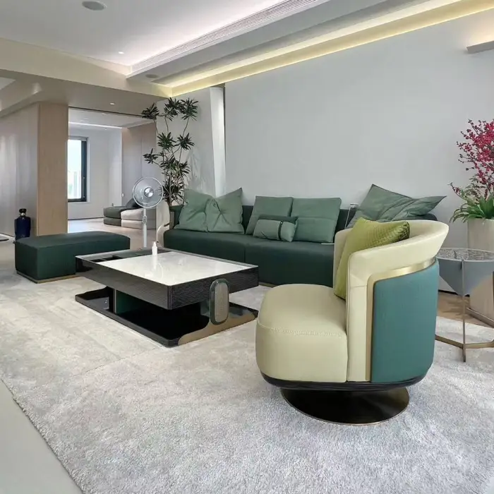 The sofa is designed in a light luxury style, making it suitable for modern interiors.