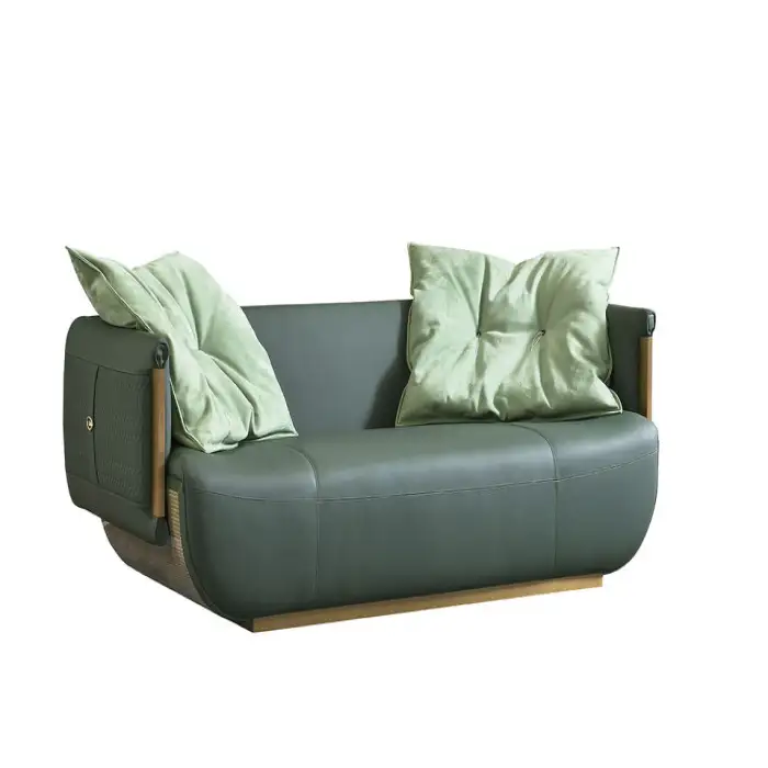 The sofa is made from genuine leather for the cover, soft sponge for filling, and features sturdy stainless steel legs.