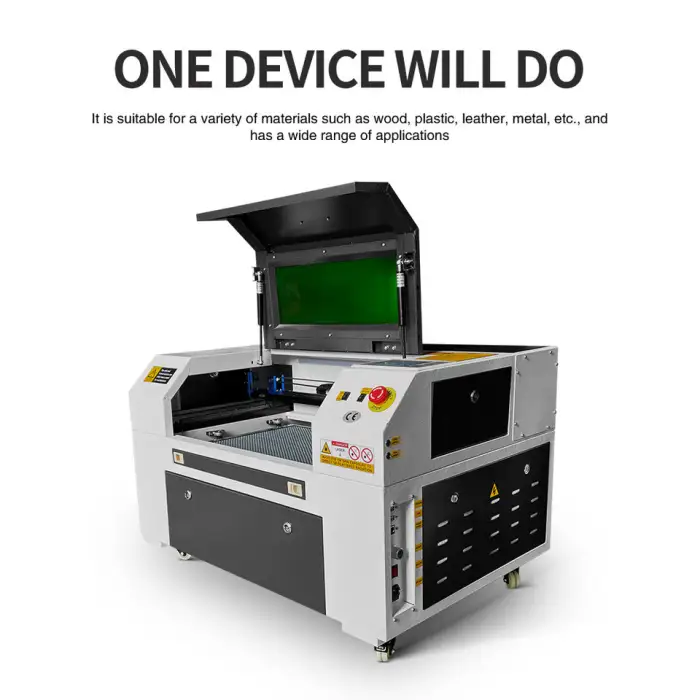 The KH-5030 can cut and engrave a variety of non-metal materials including wood, acrylic, glass, leather, MDF, plastic, paper, plywood, stone, rubber, and Plexiglass.