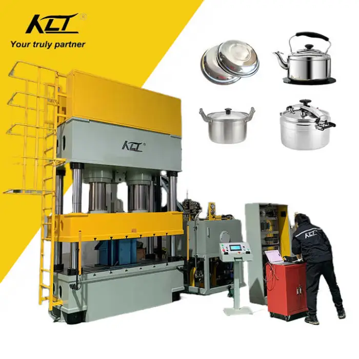 The Kitchenware Utensils Making Machine features a robust four-column three-beam hydraulic press design for enhanced durability and performance.