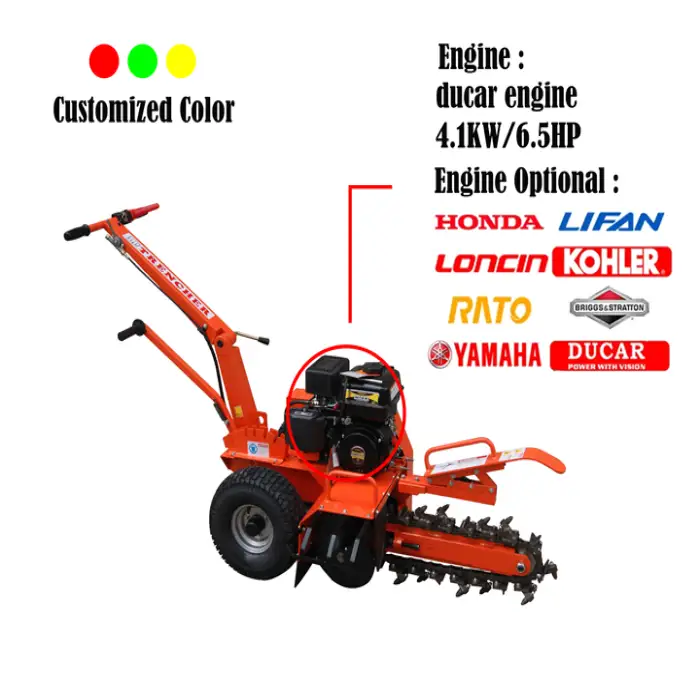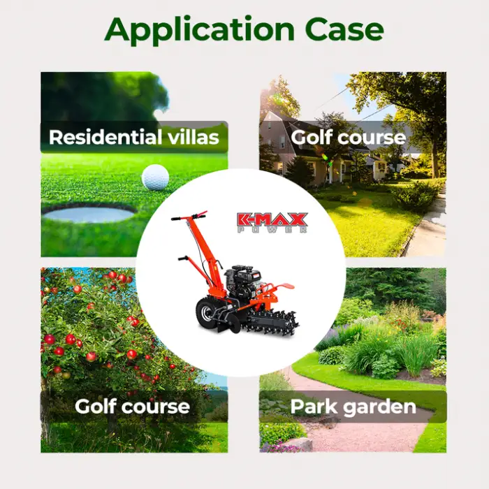 The K-Maxpower Mini Chain Trencher is a walk-behind, easy-to-control design intended for both professionals and beginners. New operators should read the user manual, practice in a safe area, and follow safety procedures before tackling larger jobs.