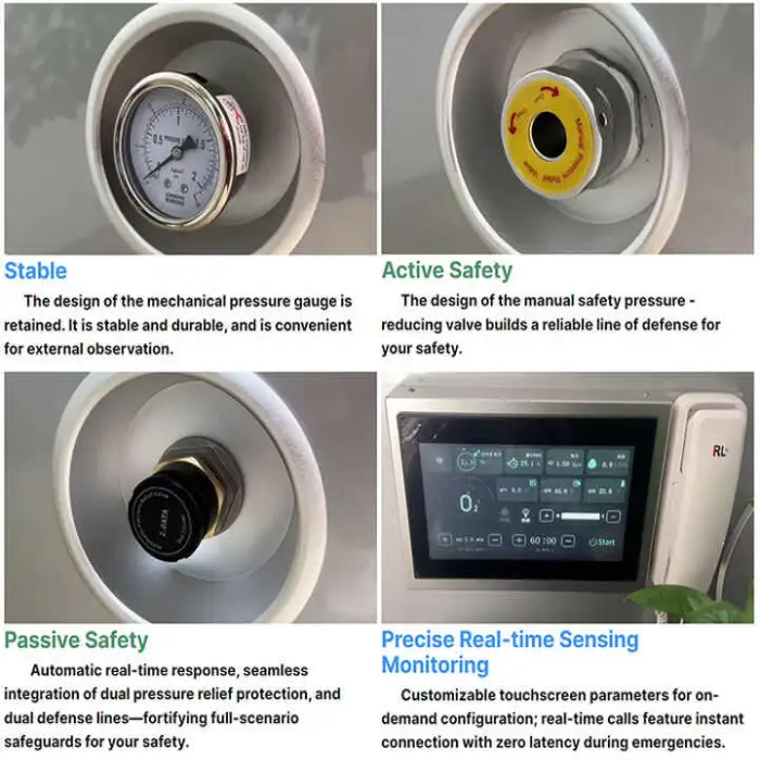 The chamber supports multiple usage types: sitting, standing, or lying, providing flexibility for different therapies and user comfort.