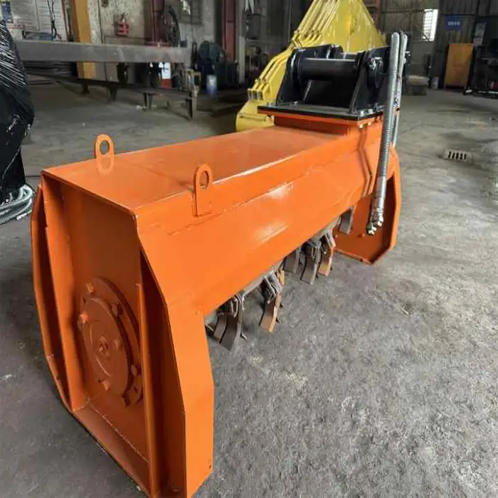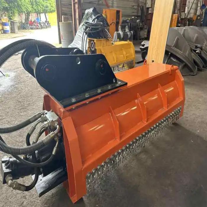 This flail attachment is compatible with mini excavators weighing between 3 to 6 tons.