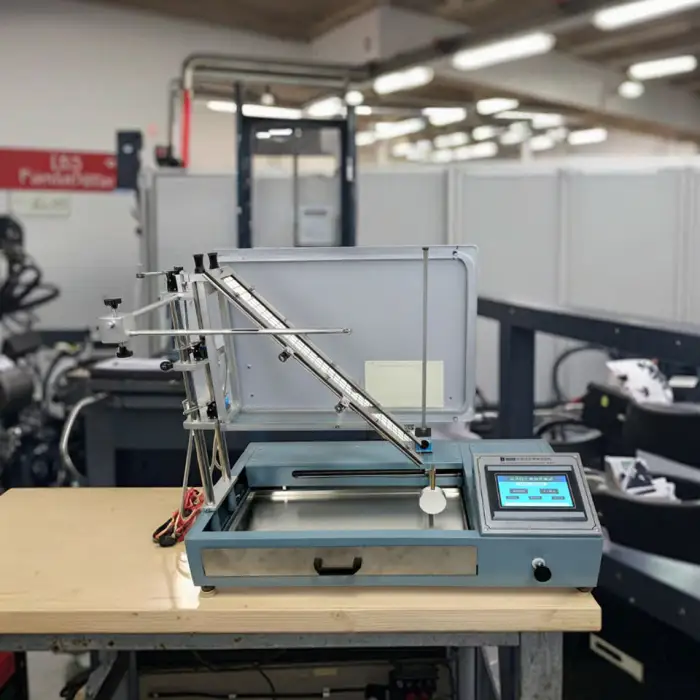The Laboratory Equipment Touch Screen Toy Flammability Tester is designed to test the flammability of various materials, including plastics and rubber.