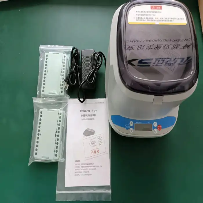 Disconnect power before cleaning. Wipe external surfaces with a soft cloth and mild detergent; avoid corrosive solvents. Inspect rotors and adapters for damage, and follow manufacturer guidance for periodic maintenance and calibration.