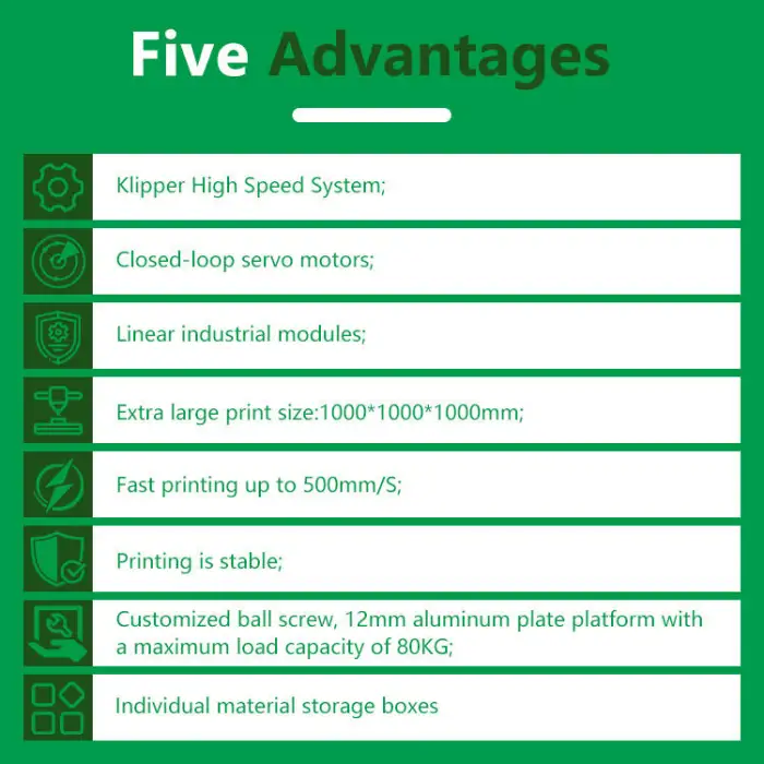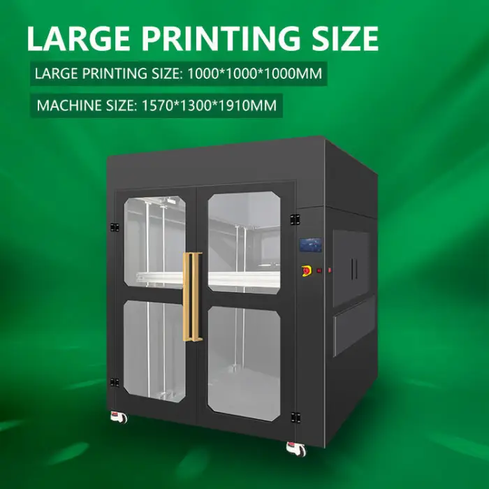 The build size of the Large 3D Printer is 1000*1000*1000mm, allowing for the creation of large and detailed models.