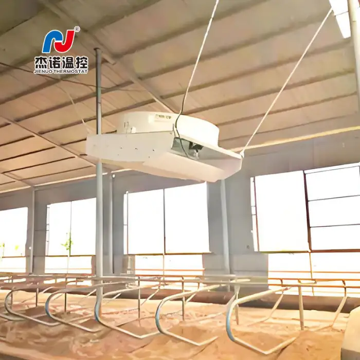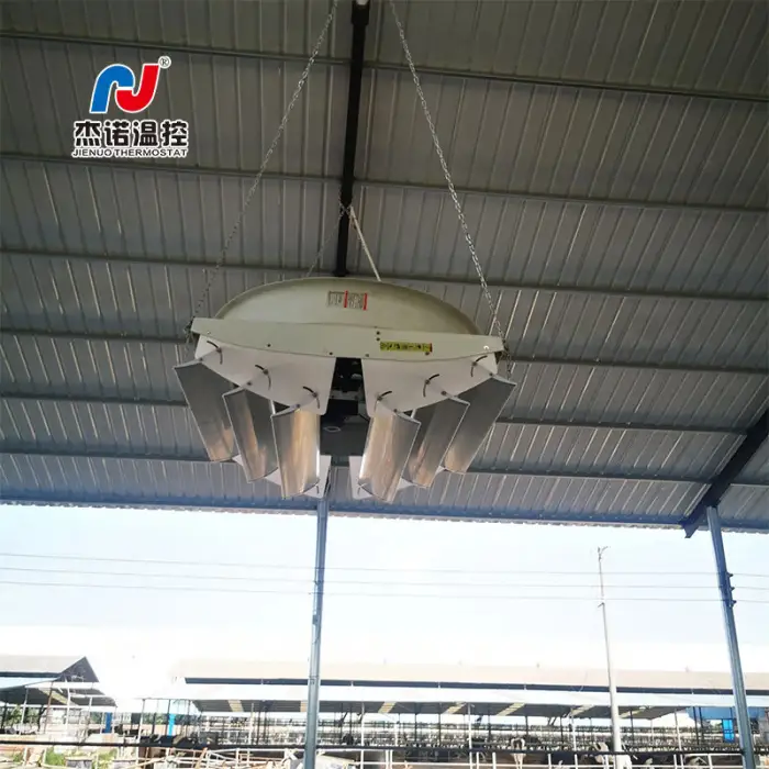 The fan provides a cool and comfortable environment, promoting the health and well-being of livestock.