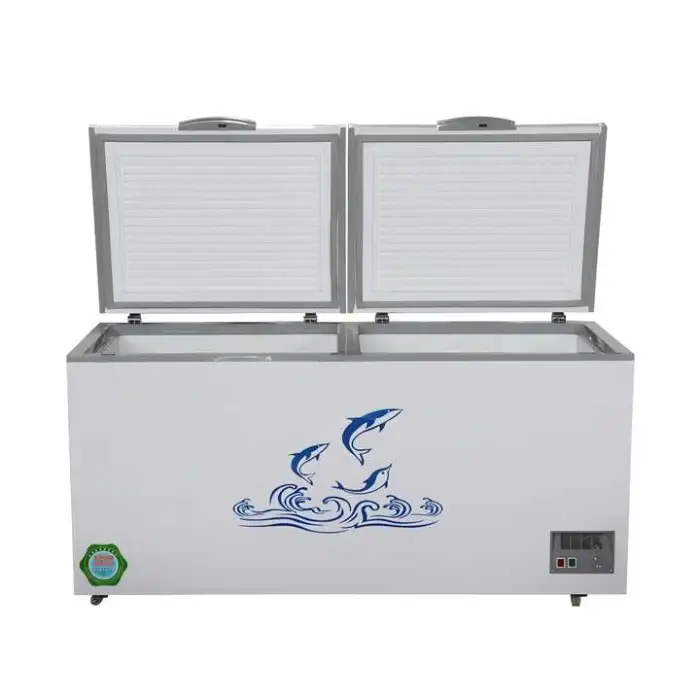 This commercial chest freezer has a large 1000-liter capacity, providing ample space for storing ice cream and other frozen goods.