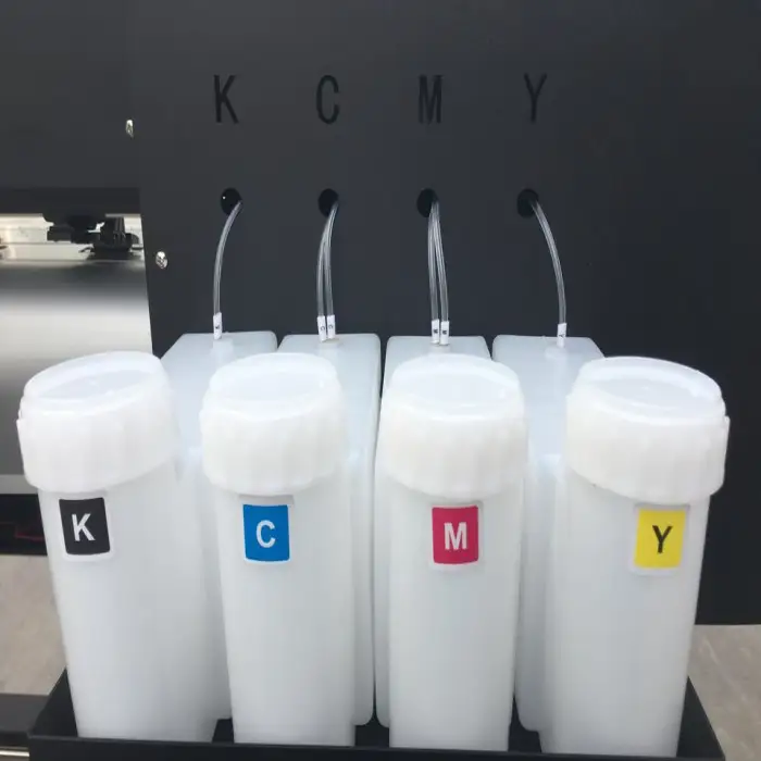This printer uses eco-solvent ink, which is eco-friendly and safe for printing various materials.