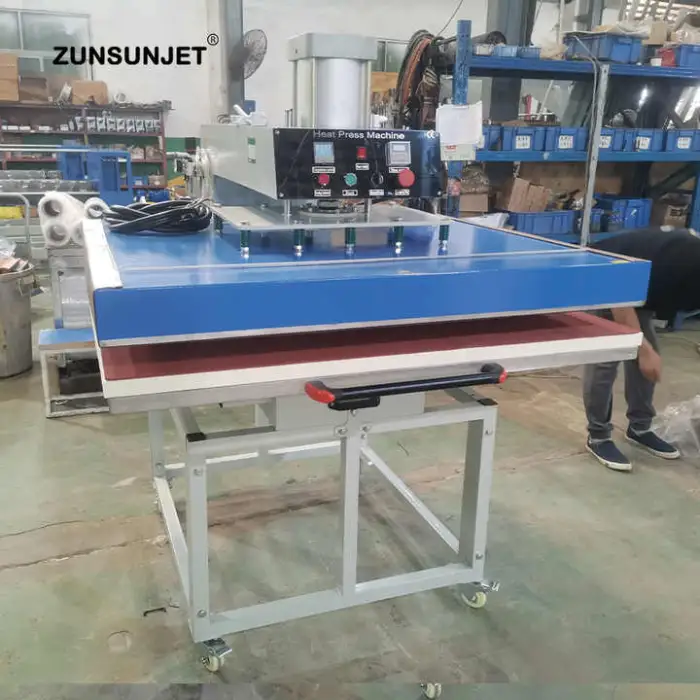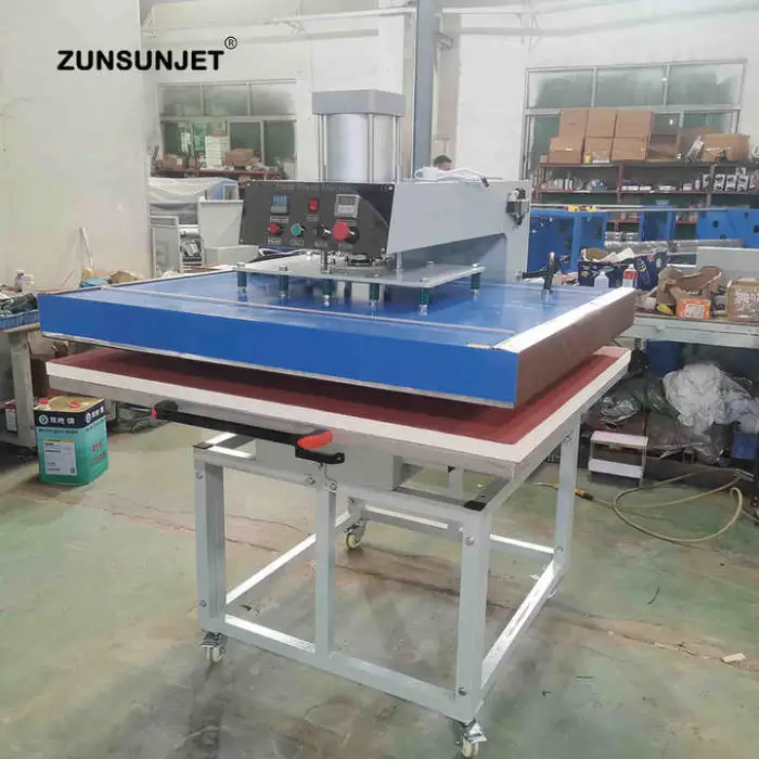 This machine is a pneumatic heat press, which uses air pressure for operation.